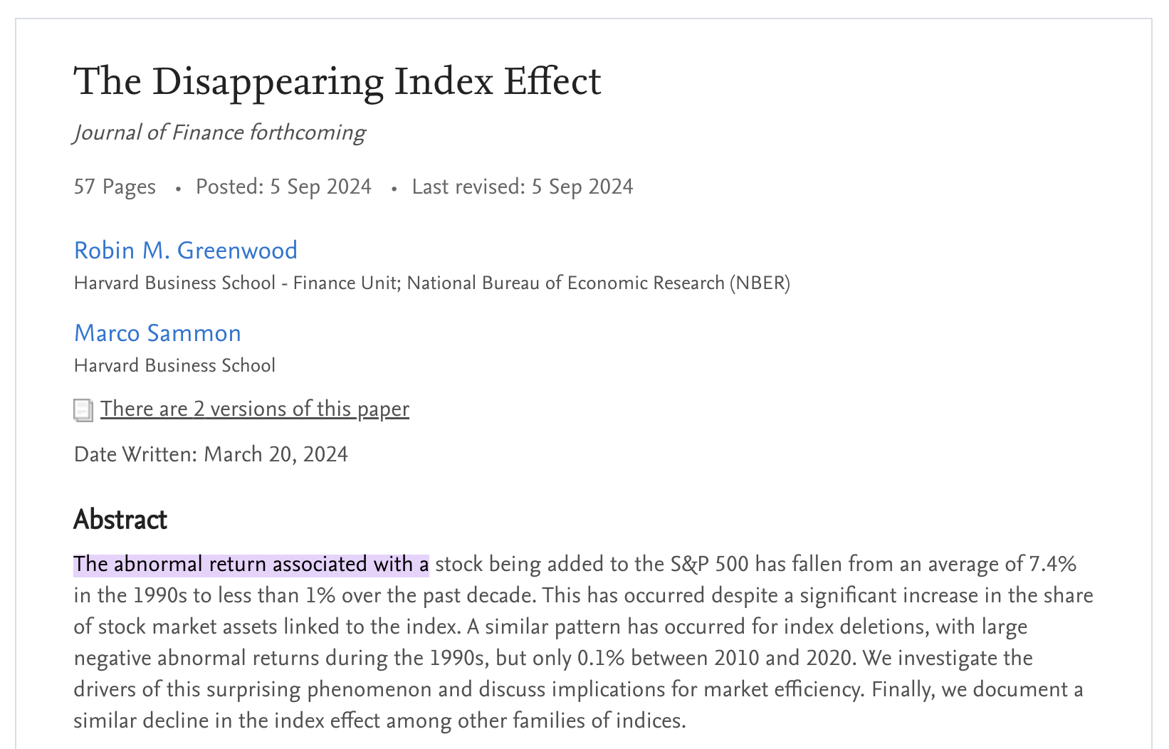1980년대에 기업의 지수 편입은 ‘깜짝 이벤트’와 같았죠. 지수 편입 소식이 알려지면 투자자들은 앞다투어 해당 주식을 구매하려고 했어요. 하지만 지금은 지수를 추종하는 펀드도 많아졌고, 시장에 유동성도 풍부하며, 무엇보다 정보가 훨씬 정확하고 빠르게 퍼지기 시작했어요. 연구진은 S&P 500 외에도 Russell 1000/2000, Nasdaq 100 같은 주요 지수들에서도 유사한 결과를 발견했어요.